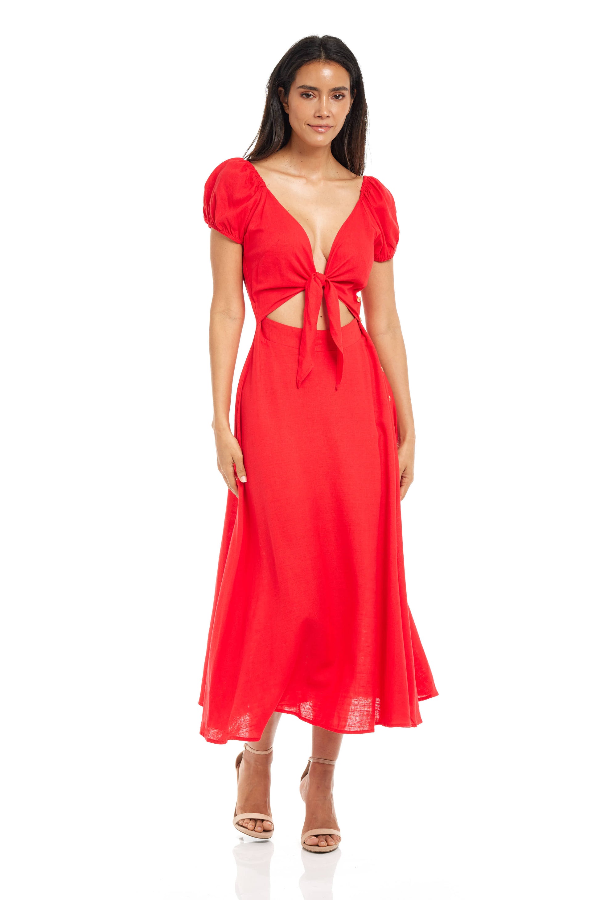 Show off your confidence this spring and summer with this daring, bold Red Montego Midi Dress! Available now from our Guavaberry collection of online boutique dresses, this ravishing red midi dress is perfect for enjoying the hot sun. The Red Montego Midi Dress is eye-catching with its vibrant, comfortable solid scarlet material and its adjustable front tie, allowing you to create your own unique style every time you wear it!